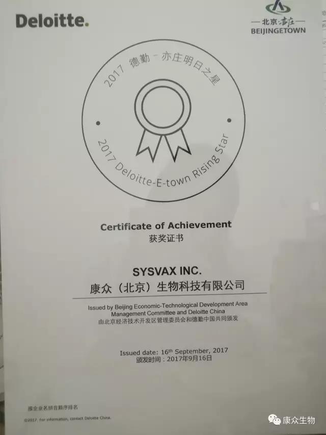 會上,德勤-亦莊高科技高成長企業(yè)20強(qiáng),明日之星同時(shí)頒布,康眾(北京)生物科技有限公司被評選為“德勤-亦莊明日之星”!康眾生物能夠獲此殊榮,意味著北京經(jīng)濟(jì)技術(shù)開發(fā)區(qū)政府對康眾生物的充分肯定與支持,也標(biāo)示著開發(fā)區(qū)政府對康眾生物未來發(fā)展的信心與鼓勵(lì)。