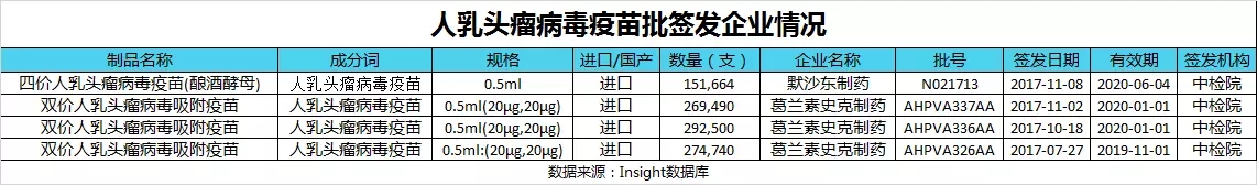 今年的人乳頭瘤病毒疫苗簽發(fā)情況如下圖所示:葛蘭素史克 2 價簽發(fā) 836,730 份,最早簽發(fā)時間是今年 7 月,相隔 4 月后,默沙東 4 價簽發(fā) 151,664 份。
