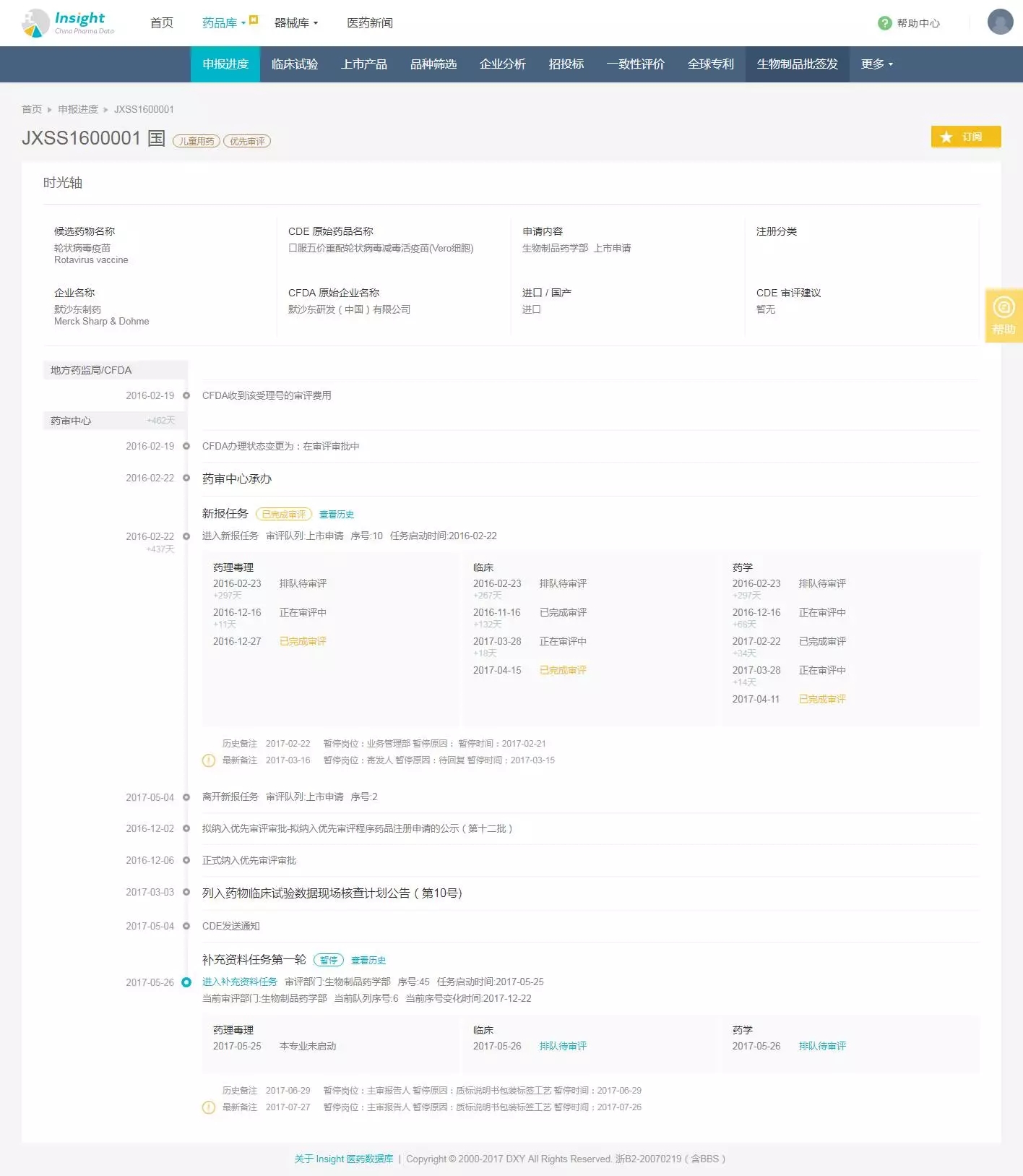 默沙東口服五價重配輪狀病毒減毒活疫苗 (Vero 細(xì)胞) 在 2016 申請生產(chǎn),該品種作為兒童藥被納入優(yōu)先審評,并被納入 2017 年 1 月 4 日 CFDA 公布的新一批臨床自查名單。據(jù)了解,該疫苗國內(nèi)由智飛生物代理。相關(guān)品種國內(nèi)僅有為蘭州生物所的單價輪狀病毒疫苗上市。