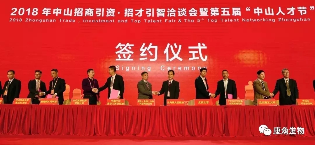 今天上午,2018年中山招商引資·招才引智洽談會(huì)暨第五屆中山人才節(jié)開幕式,在中山博覽中心綜合展廳主會(huì)場(chǎng)舉行。三角鎮(zhèn)黨委書記黃澤科代表三角鎮(zhèn)人民政府與康眾(北京)生物科技有限公司進(jìn)行簽約。
