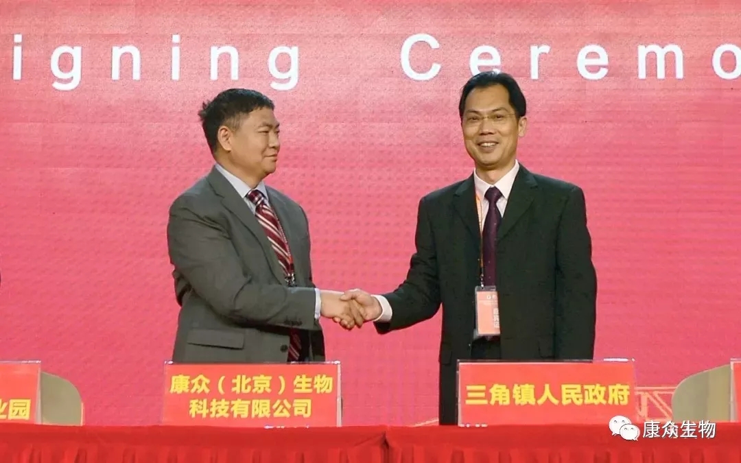 ★在今天的“3·28”經(jīng)貿(mào)招商中,三角鎮(zhèn)黨委書記黃澤科代表三角鎮(zhèn)人民政府與康眾(北京)生物科技有限公司進(jìn)行簽約。