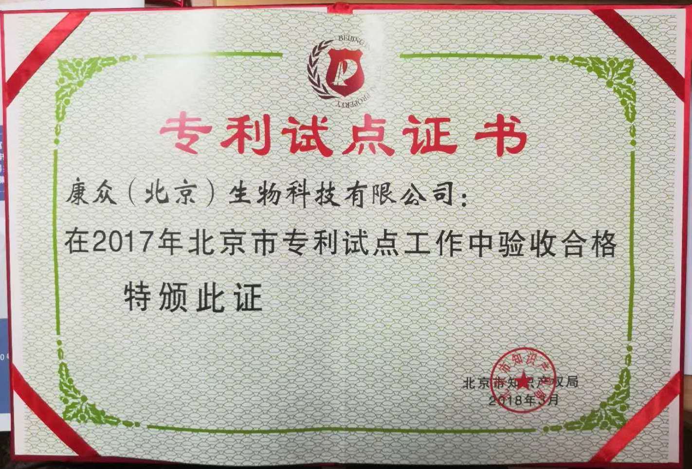 今年的4月26日是第18個世界知識產(chǎn)權(quán)日。至此宣傳周之際,康眾生物又迎來今年的另一項殊榮---北京市專利試點單位。根據(jù)《北京市企事業(yè)單位專利試點工作管理辦法(修訂稿)》的要求和北京市專利試點工作的總體安排組織和開展的。根據(jù)工作安排,北京市知識產(chǎn)權(quán)局對參加2017年北京市專利試點工作的企事業(yè)單位進行了一年的試點培育工作,并與各區(qū)知識產(chǎn)權(quán)局、市經(jīng)濟技術(shù)開發(fā)區(qū)知識產(chǎn)權(quán)局共同對有關(guān)企事業(yè)單位進行了專利試點考核驗收工作。